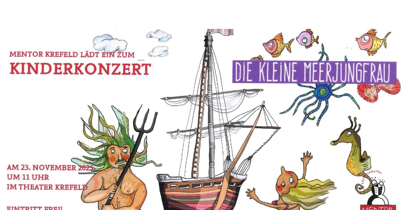 Rund 80 Kinder, ebenso viele Eltern und viele Leselernpaten ("MENTOR - die Leselernhelfer e.V.") besuchten am 23. Nov. 2025 gemeinsam das Kinderkonzert "Die kleine Meerjungfrau" mit der Niederrheinischen Symphonikern. Zuvor bekamen alle Kinder das gleichnamige Buch zum Lesen geschenkt. Möglich wurde das Projekt durch eine Spende im mittleren fünfstelligen Bereich von einer Krefelder Stiftung, vermittelt durch Fundraising-Ziele. (zum WZ-Artikel bitte auf das Bild klicken.)