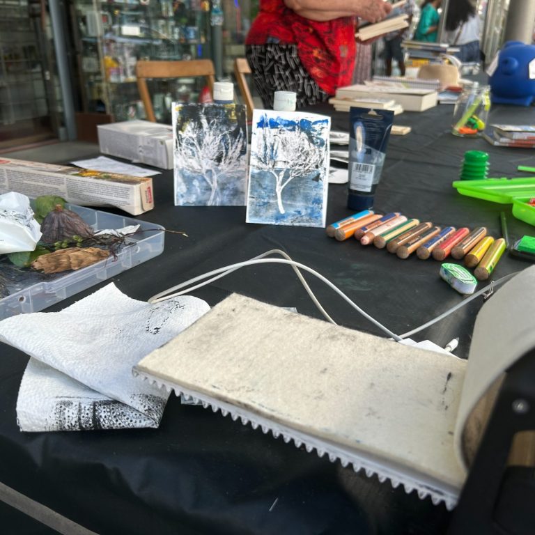 Diese kleine Presse konnte vom Verein "MENTOR - die Leselernhelfer Krefeld e.V." dank der Spende einer Krefelder Stiftung von 300 Euro angeschafft werden. Sie fand ihren Einsatz auf "Kultur findet Stadt" im Juni 2025 in der Krefelder Innenstadt. Zahlreiche Kinder erstellten sich schöne Postkarten - kostenlos.